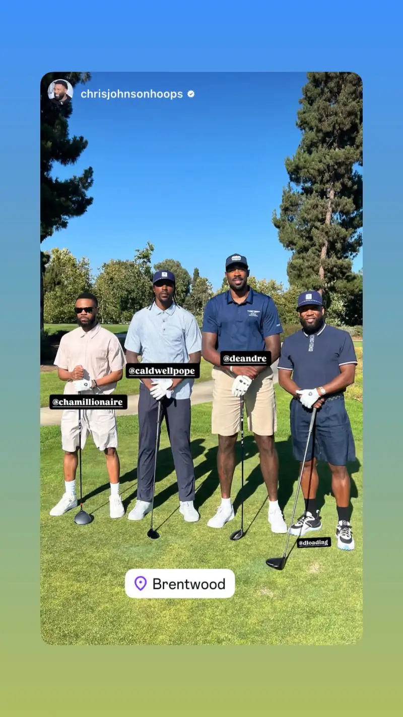 高端运动!波普ins转发与小乔丹等人打高尔夫球的合影