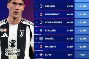 开云下载-意甲球员身价下跌榜:弗拉霍维奇-1500万欧居首,尤文前十占5席